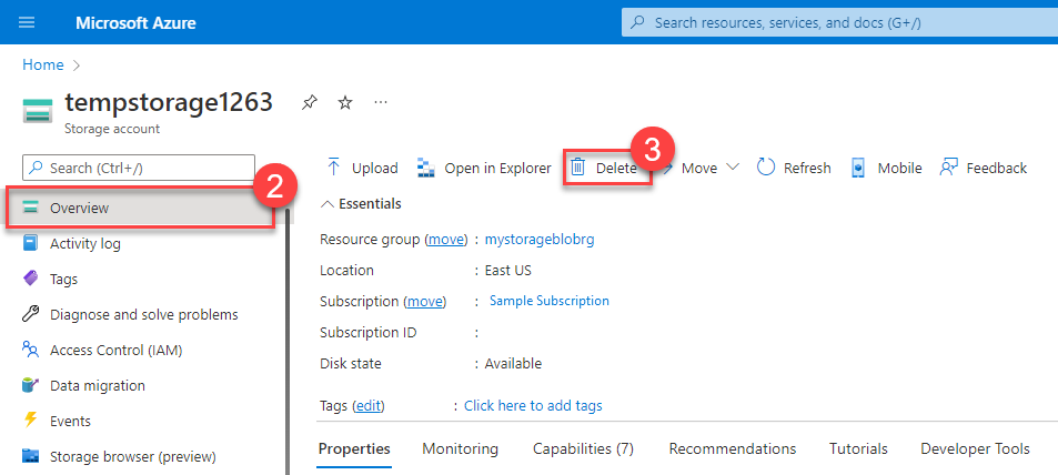 You should get a notification letting you know you can’t delete the resource because it has a delete lock. In order to delete the storage account, you need to remove the delete lock.